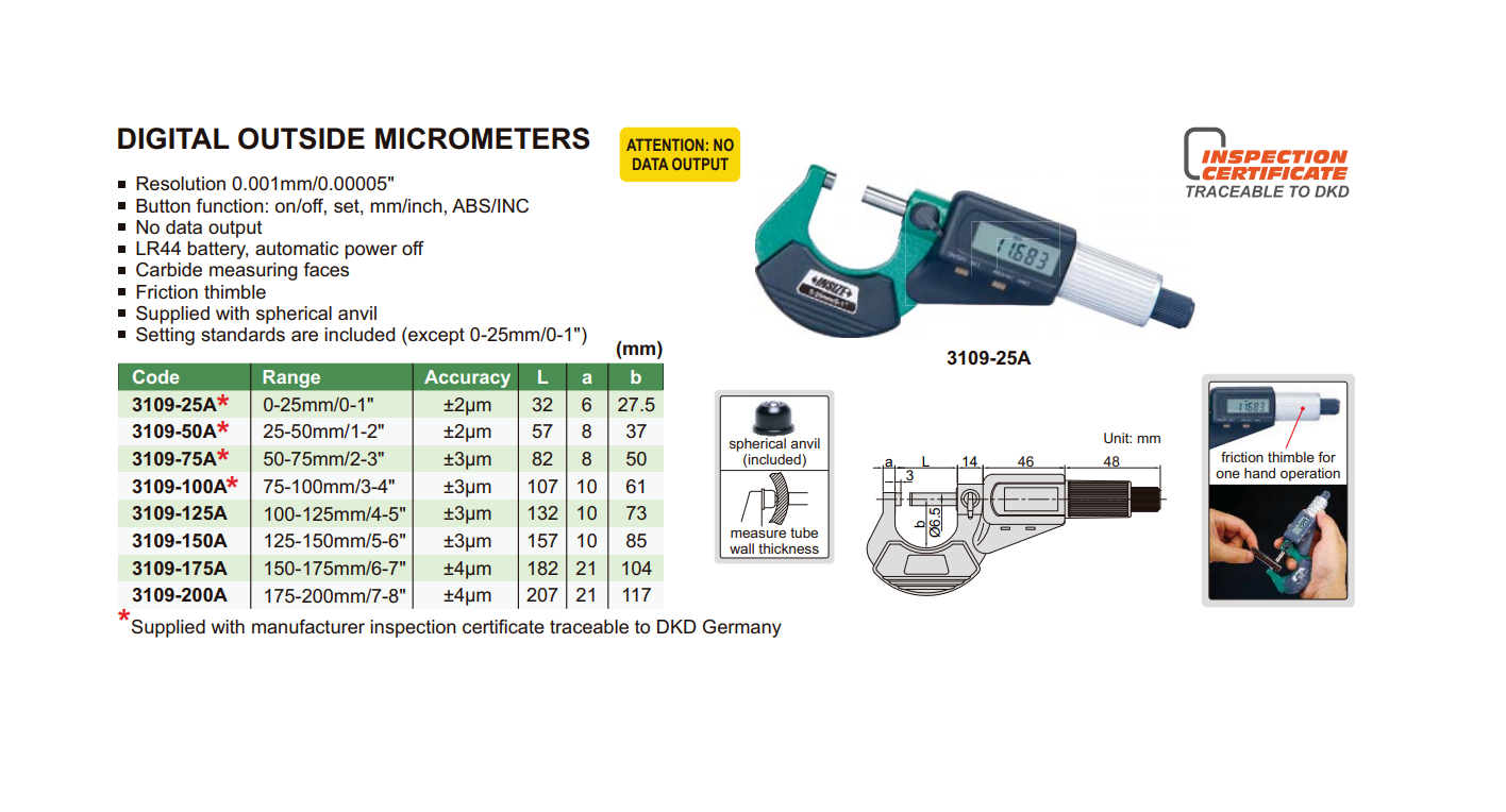 DIGITAL OUTSIDE MICROMETER CODE : 3109